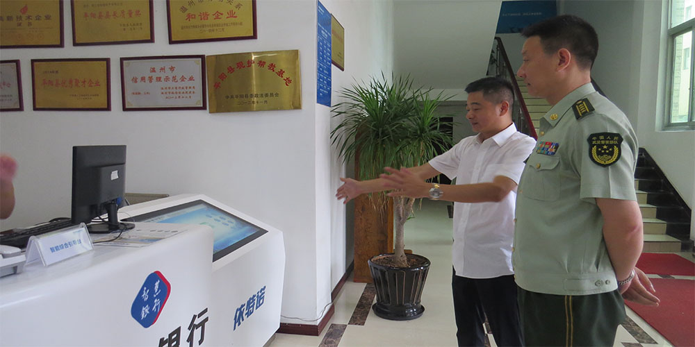 2018年5月23日上午,武警部队温州市消防支队支队长、温州市公安消防局局长罗军大校带领支队司令部、政治处等相关部门负责人在平阳县消防大队大队长、公安消防局局长陈旭伟少校的陪同下莅临依特诺科技考察指导。公司董事长冯易乐、工会主席白桦接待了罗军大校一行。